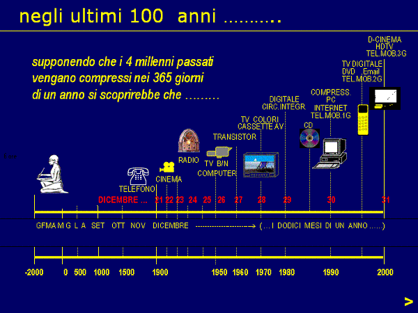 | EDITORIALE La stampa nazionale ha riportato con grande rilievo i dati e le constatazioni che emergono dal trentottesimo rapporto sulla situazione sociale italiana che il CENSIS, il prestigioso centro di indagini sociali, ha recentemente pubblicato. Fra i temi trattati in tale rapporto ci ha colpito quello che il Centro ha identificato come "disagio etico causato dalla sempre piu' orgogliosa artificialita' e autoreferenzialita' della tecnica". Per la verita' ci si riferiva in particolare al presente dibattito sulla fecondazione assistita, ma tali considerazioni possono allargarsi all’intero comparto tecnico e, per quanto ci riguarda, a quello relativo alle tecnologie della comunicazione. Varra' quindi la pena di fare qualche considerazione a tale riguardo. In questi ultimi decenni l’umanita' e' stata investita in maniera crescente dai prodotti che la tecnologia dell’informazione e comunicazione, la ICT (Information and Communication Technology), le ha riversato. Il gradiente di innovazioni che la tecnologia comunicativa ha saputo sviluppare ha dell’impressionante: mai l’uomo aveva assistito ad una tale accelerazione dello sviluppo tecnologico quale quella verificatasi negli ultimi cent’anni e, con progressione esponenziale, ancora piu' rilevante nell’ultimo decennio. Il grafico qui riportato (Fig.1) visualizza tale accelerazione: equiparando ai 365 giorni di un anno il percorso comunicativo umano degli ultimi quattromila anni, dalle prime forme di scrittura alla recente informatica, si rileva che l’impennata delle tecnologie comunicative verificatasi nell’ultimo secolo verrebbe ad occupare gli ultimi dieci giorni di dicembre. In tali dieci giorni si concentra dunque una impressionante quantita' di nuovi servizi comunicativi, dalla radio fino all’informatica e piu' oltre fino alle reti di telefonia mobile UMTS. E’ importante sottolineare il fatto che questo sviluppo e' stato reso possibile primariamente dai progressi conseguiti nella tecnologia dei semiconduttori, dai transistor fino ai piu' recenti ed avanzati circuiti integrati su larga scala (LSI). Tali progressi hanno consentito una sempre piu' spinta concentrazione di funzioni nel singolo chip e quindi una rilevante miniaturizzazione degli apparati oltre ad una loro piu' solida affidabilita'. Cio' ha aperto la strada alle logiche digitali aprendo vie di sviluppo ancora qualche decennio fa del tutto impensabili. La potenzialita' logica di un attuale personal computer sorpassa di gran lunga quella dei mastodontici calcolatori impiegati negli anni ’40 e ’50 aquali quelli che ad esempio permisero la messa a punto dei procedimenti della fissione nucleare. In conseguenza di tale rapido sviluppo, l’uomo e' venuto a trovarsi fra le sue mani, spesso inesperte ed inconsapevoli, mezzi di una enorme potenza elaborativa, impiegabili per gli scopi piu' disparati: dalla scrittura, archiviazione ed invio di messaggi di testo all’acquisizione e correzione di immagini ad alta definizione, dall’archiviazione di ore ed ore di brani musicali o di film alla loro riproduzione con possibilita' che rasentano, se non sorpassano, quelle disponibili nelle piu' avanzate sale cinematografiche. Si pensi ad esempio alla potenzialita' comunicativa presente in un piccolo telefono cellulare che offre la possibilita' di acquisire, gestire e trasferire un’ampia gamma di informazioni, da quelle di testo fino a quelle di immagini fisse o in movimento. E’ inevitabile che tale stato di cose possa appagare l’uomo fornendogli una apparente sensazione di onnipotenza. Sensazione peraltro basata su una conoscenza, spesso approssimativa, delle macchine che egli impiega. Alcune domande sono a tale riguardo lecite: quante di tali possibilita' l’utente effettivamente utilizza? Si rende conto di cosa sta facendo? Conosce i processi che gli consentono tali operazioni? Pensiamo che le risposte che la piu' parte delle persone potrebbe dare a tali domande sarebbero alquanto imbarazzanti. Sono domande gia' impegnative per noi tecnici che con tali argomenti ci troviamo in contatto da anni e sui quali ci siamo spesso cimentati. Ma proprio per questo siamo consapevoli dell’impegno e della fatica profusi dai ricercatori che tali traguardi hanno saputo raggiungere. Siamo anche consapevoli dell’umilta' con la quale tali ricerche vanno condotte, consci del fatto che le teorie sulle quali si opera per raggiungere i risultati sperati non rappresentano la realta' naturale che ci circonda, ma solo una sua schematizzazione ideale, un ‘modello’ sul quale sviluppare una nostra approssimata interpretazione dei fatti fisici. Tale modo di affrontare la conoscenza dei fenomeni naturali, che ha guidato coscientemente lo sviluppo scientifico in questo ultimo secolo, dopo l’ubriacatura di onnipotenza che aveva travolto l’uomo del XIX secolo, e' bene sintetizzata dal "Principio di indeterminazione" enunciato dal noto fisico Werner Heisenberg nel 1927. In parole semplici tale principio afferma l’incapacita' umana di pervenire ad una esatta conoscenza della realta' che ci circonda: infatti tutte le volte che proviamo ad indagare un fenomeno penetrando nel suo interno con i nostri strumenti di misura ne perturbiamo con la stessa loro presenza il suo svolgimento ricavandone quindi una conoscenza imprecisa. Se l’uomo improntera' a tale onesto realismo il suo pensiero, la tecnica da lui elaborata non potra' essere accusata ne' di orgogliosa artificialita', ne' di autoreferenzialita'. ATTIVITA’ DELLA SMPTE ITALIAN SECTION Giornata di studio "L’Audio, questo misconosciuto", 22 Febbraio 2005, Roma - Aula Magna del Ministero delle Comunicazioni – viale Europa 90 Organizzata congiuntamente dalla SMPTE, dalla AICT (Associazione per la Tecnologia dell’Informazione e delle Comunicazioni) e dalla AES (Audio Engineering Society), questa Giornata di Studio intende fornire, anche ai non addetti ai lavori, un quadro ampio e variegato delle evoluzioni dei sistemi au